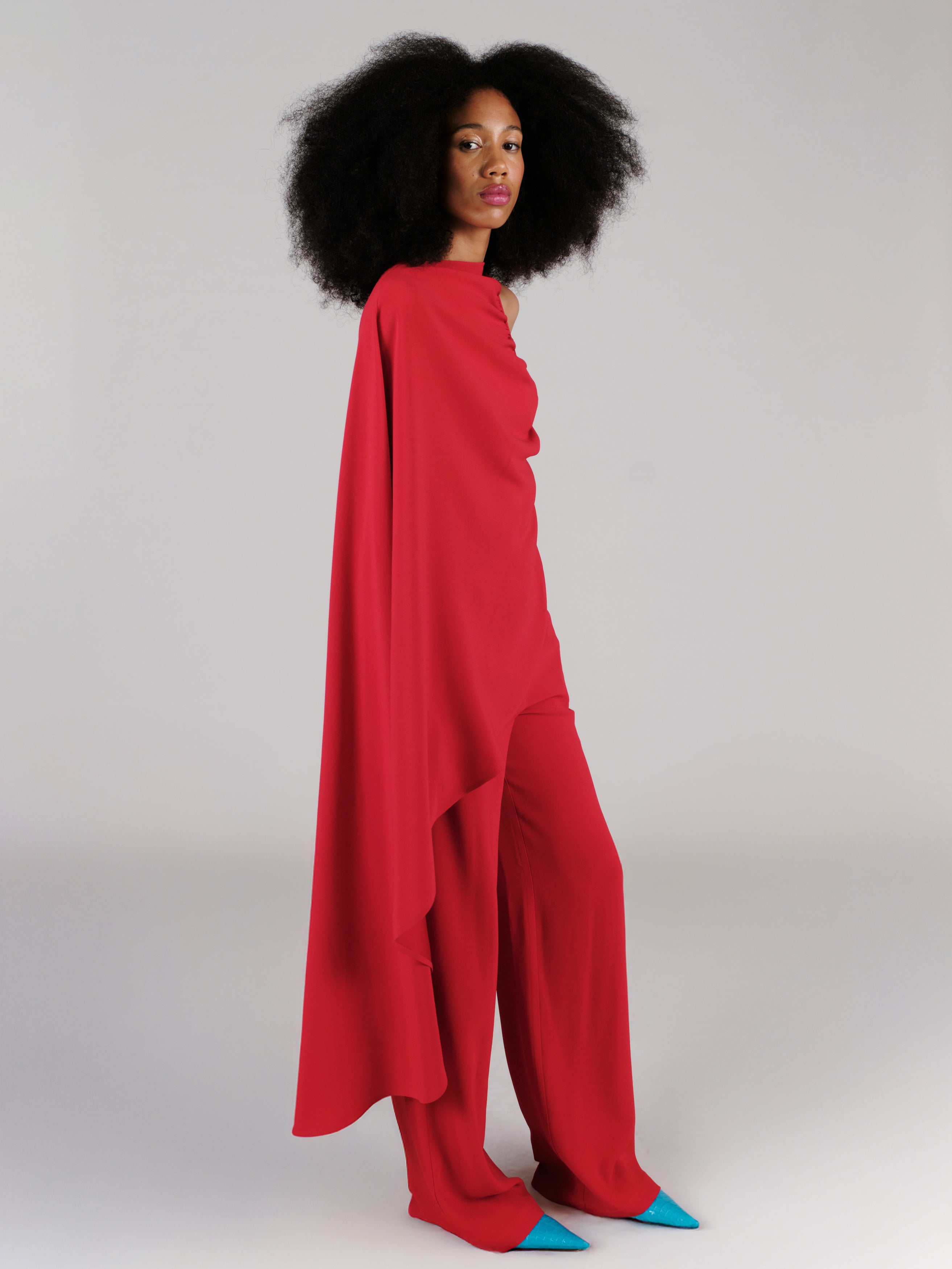 Red one-shoulder cape top