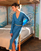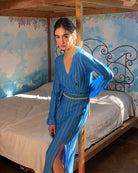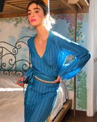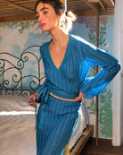 This beautiful knit skirt is crafted in turquoise light viscose and on-tone lurex made in Italy